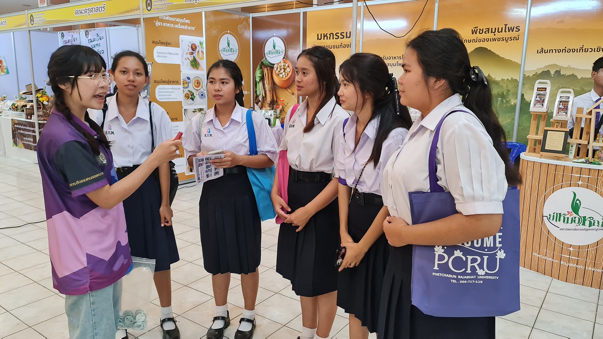 นักศึกษาชีววิทยาออกร้านจำหน่ายผลิตภัณฑ์และแนะแนวการศึกษา ในงาน มหกรรมชุมชนท้องถิ่น และการขับเคลื่อน soft power เปิดบ้านวิชาการ open house ม.ราชภัฏเพชรบูรณ์ วันที่ 9-10 ก.ค. 2567 ณ หอประชุมประกายทอง มหาวิทยาลัยราชภัฏเพชรบูรณ์