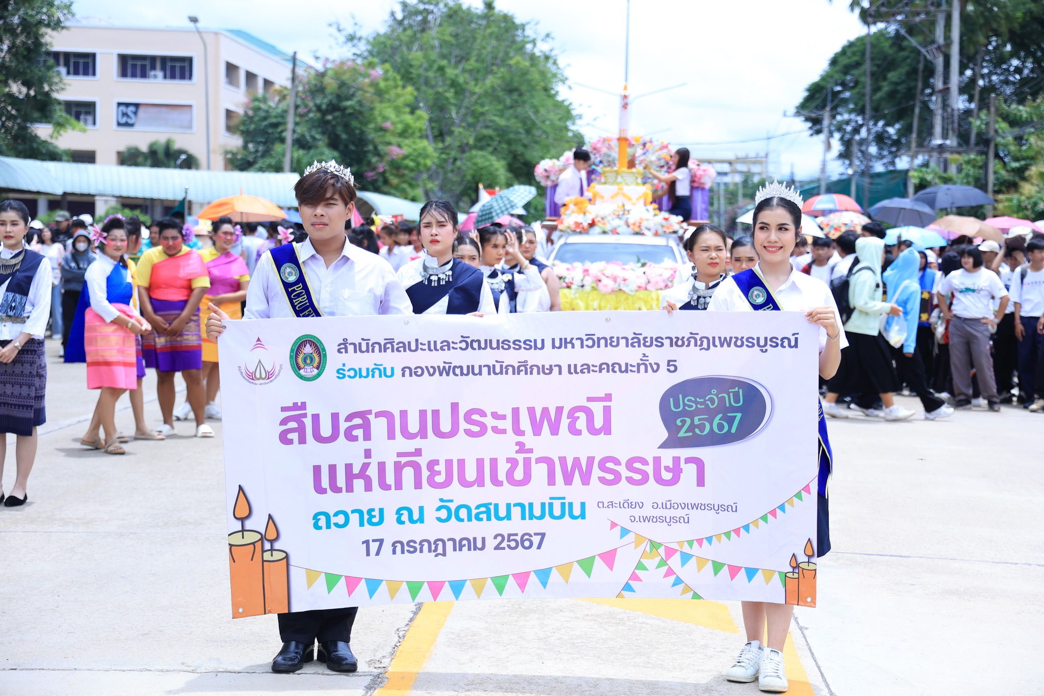 โดยกิจกรรมดังกล่าวในปีนี้ สำนักศิลปะและวัฒนธรรม ร่วมกับกองพัฒนานักศึกษา และคณะทั้ง 5 จัดโครงการสืบสานประเพณีแห่เทียนเข้าพรรษา ประจำปี 2567 ขึ้น และช่วยกันจัดทำขบวนแห่เทียนพรรษาที่สวยงาม มีความคิดสร้างสรรค์ โดยโครงการจัดขึ้น เพื่อส่งเสริมให้ผู้เข้าร่วมกิจกรรมได้เข้าใจและตระหนักถึงความสำคัญของวันเข้าพรรษา ประพฤติปฏิบัติตนอย่างถูกต้องเหมาะสมตามวิถีของชาวพุทธ ได้ทำบุญร่วมกัน มีส่วนร่วมในการทำนุบำรุงพระพุทธศาสนา และได้ร่วมกันสืบสาน อนุรักษ์ ประเพณีวัฒนธรรมอันดีงามให้คงอยู่สืบไป