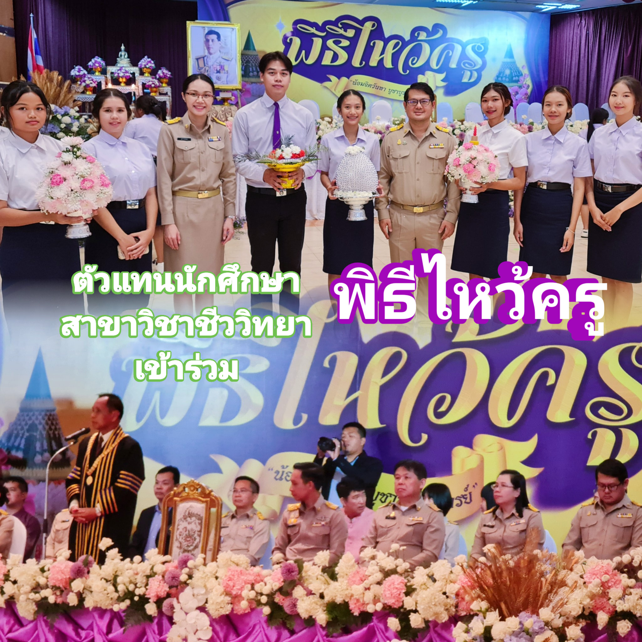 วันที่ 1 สิงหาคม 2567 ตัวแทนนักศึกษาสาขาวิชาชีววิทยาเข้าร่วมพิธีไหว้ครู ประจำปีการศึกษา 2567 ณ หอประชุมประกายเพชร มหาวิทยาลับราชภัฏเพชรบูรณ์