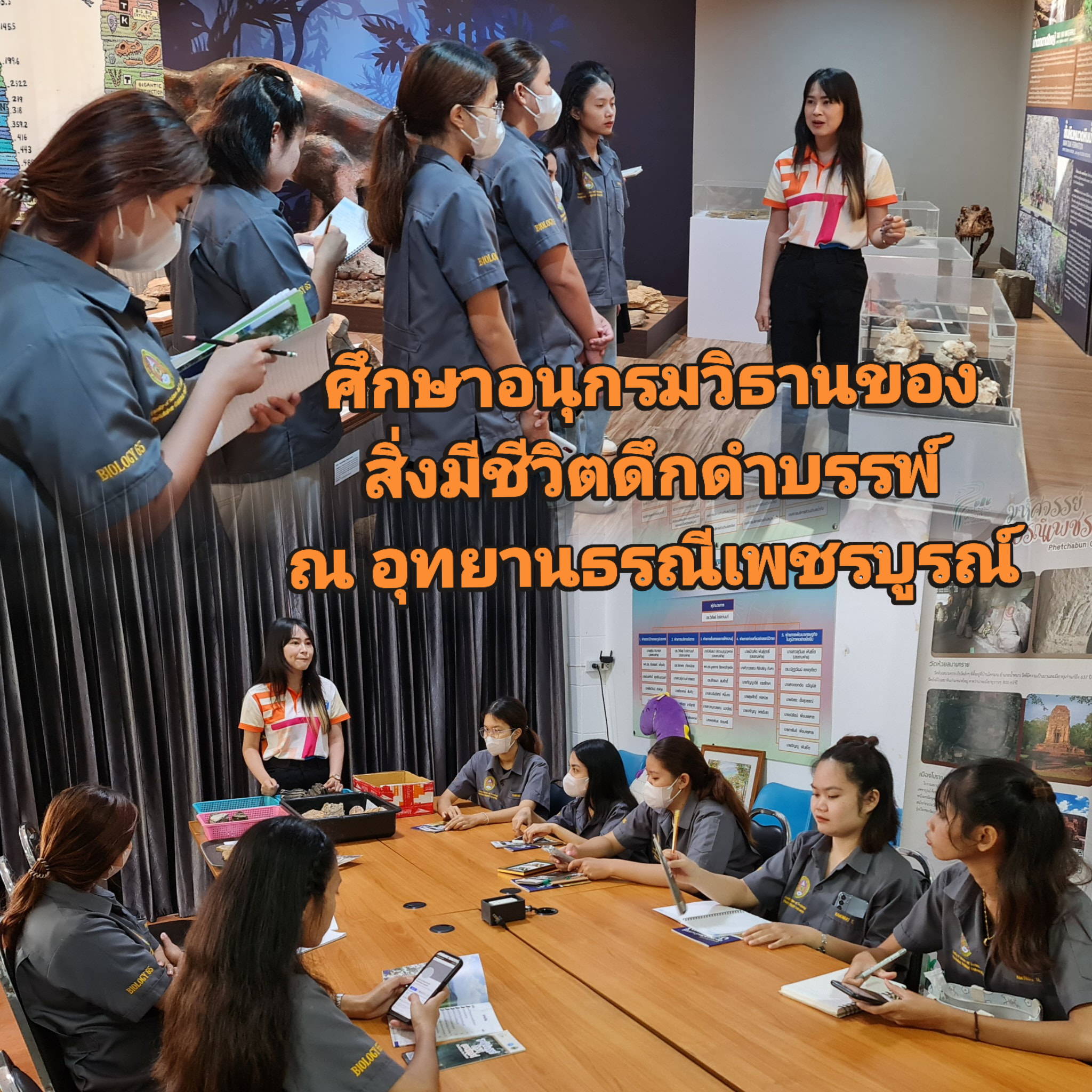 วันที่ 1 สิงหาคม 2567 นักศึกษาชั้นปีที่ 3 สาขาวิชาชีววิทยา เข้าชมพิพิธภัณฑ์ อุทยานธรณีเพชรบูรณ์ Phetchabun Geopark เพื่อศึกษาเรียนรู้เกี่ยวกับความหลากหลาย และอนุกรมวิธานของสิ่งมีชีวิตดึกในยุคดำบรรพ์ เพื่อนำข้อมูลมาฝึกการจัดจำแนกสิ่งมีชีวิตในยุคต่างๆ ซึ่งเป็นส่วนหนึ่งของการเรียนรายวิชาอนุกรมวิธาน
