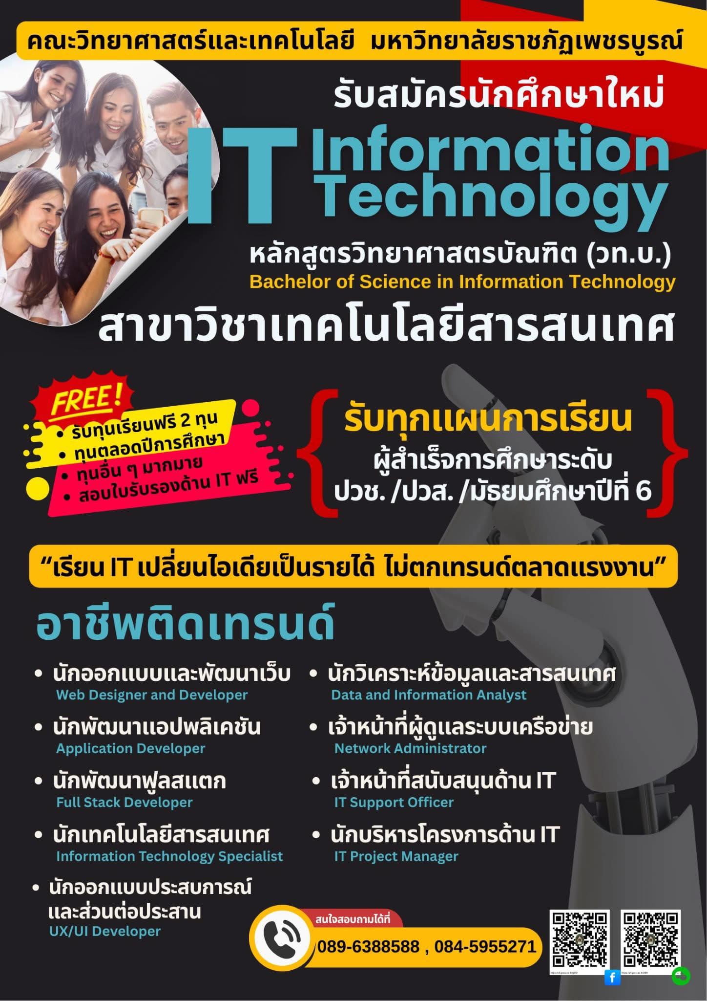 สาขาวิชาเทคโนโลยีสารสนเทศ นักวิทยาศาสตร์และเทคโนโลยี มหาวิทยาลัย ราชภัฏเพชรบูรณ์ เปิดรับสมัครนักศึกษาใหม่! เลือกเรียนได้ 2 วิชาเอก